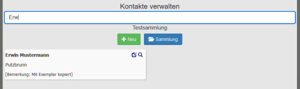 Facendo clic sulla lente vedete in quali oggetti della collezione il contatto è già utilizzato. Se il contatto è stato appena creato, l’elenco dovrebbe essere vuoto. Facendo clic sulla cartella aperta o sul pulsante della collezione tornate alla vostra collezione.