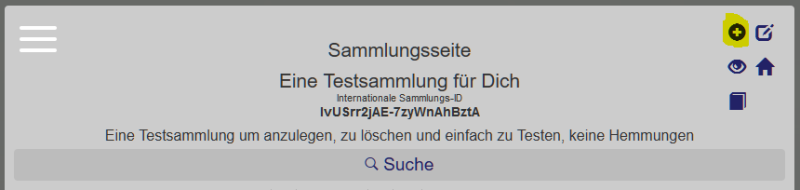 To create a new collection object, click on the “plus” icon in the upper right corner within your collection.